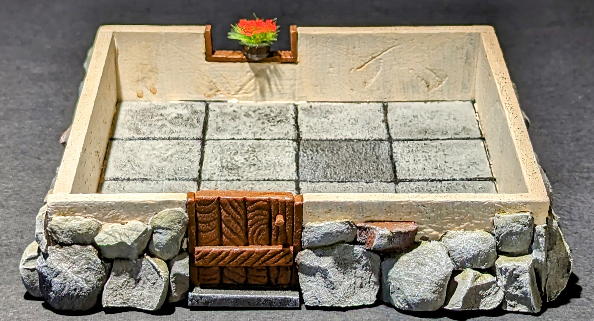 Buildings are individually made to order, with random textures, colours, detritus, fungus and/or small creatures.