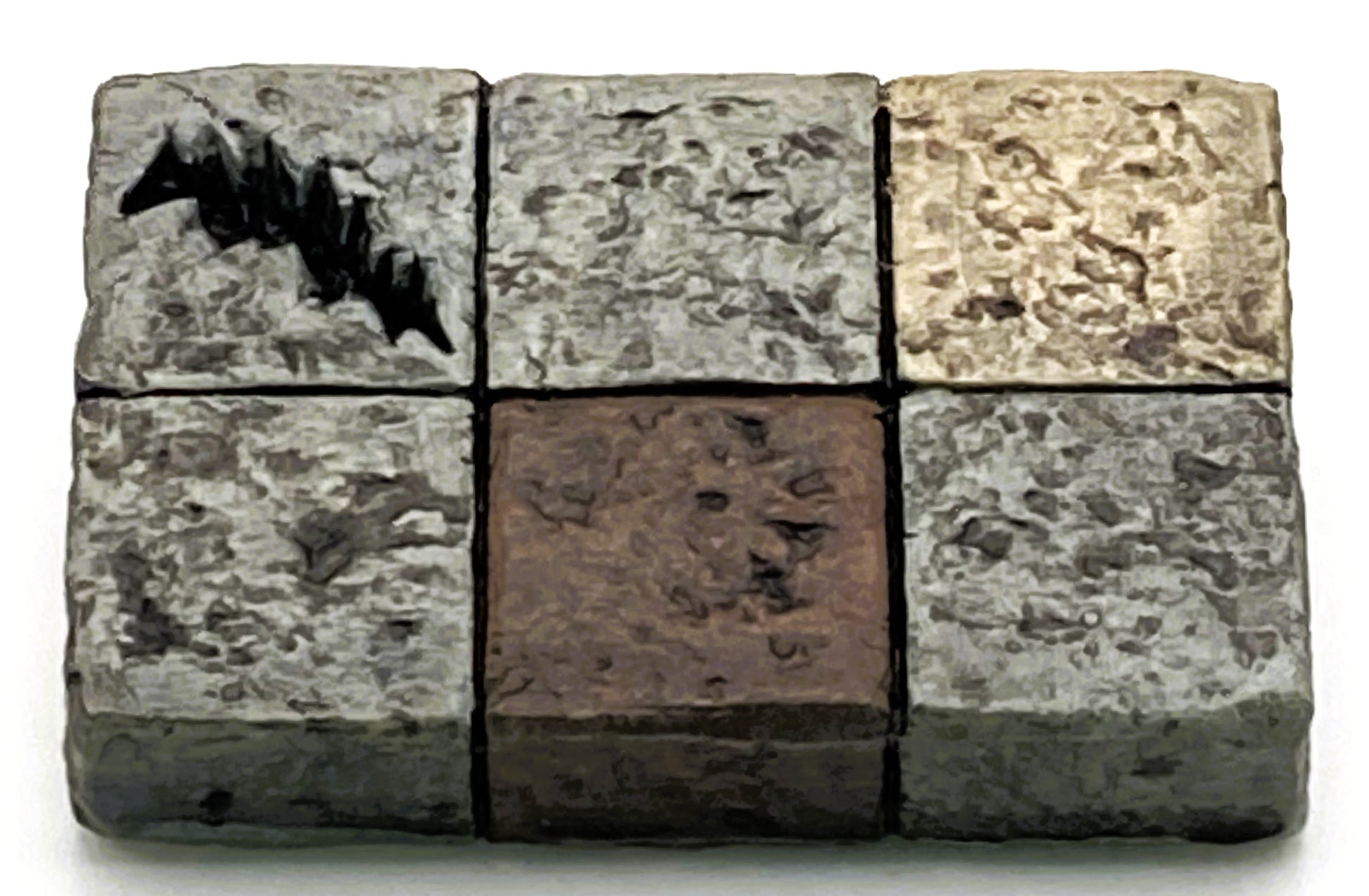 Dual-sided tile. Random textures, cracks, and colours.