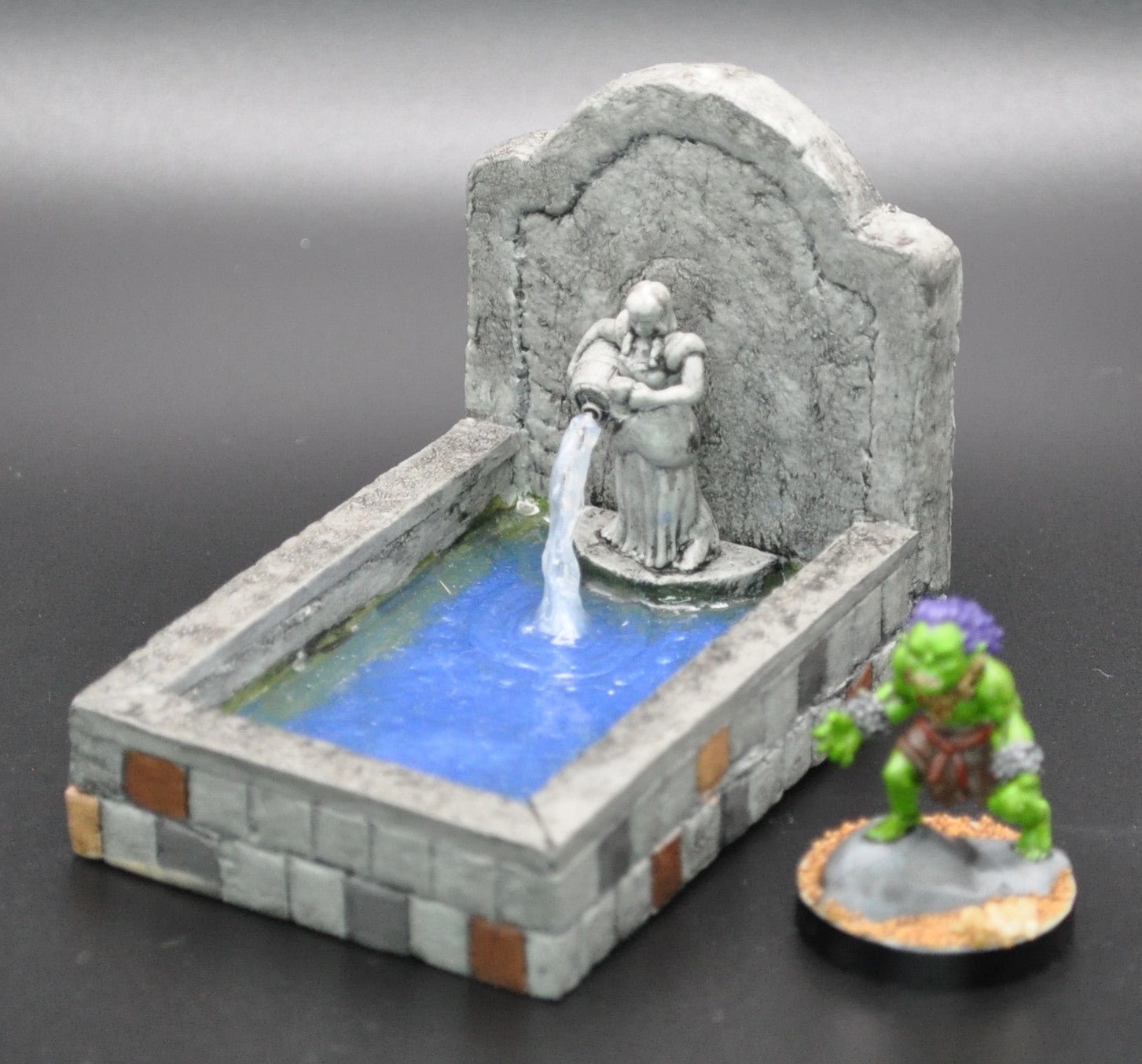The villagers gather round the fountain in the town square, filling buckets and water skins.  Your party knows a good opportunity to top up their supplies when they see one.