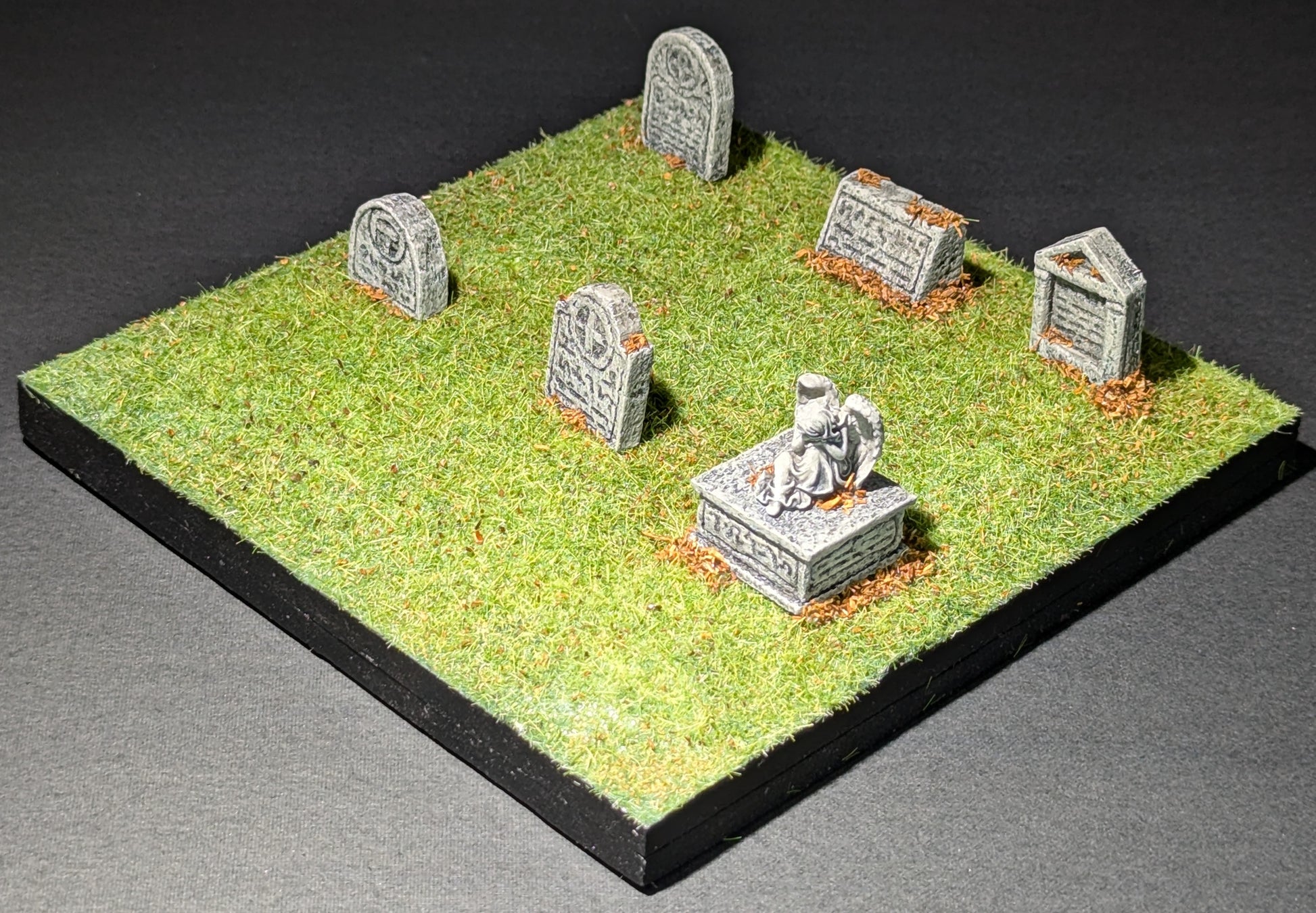 Each tile comes with six random tombstones, offering at least half cover, or a place to crouch down behind while the evil denizens of the cemetery pass.