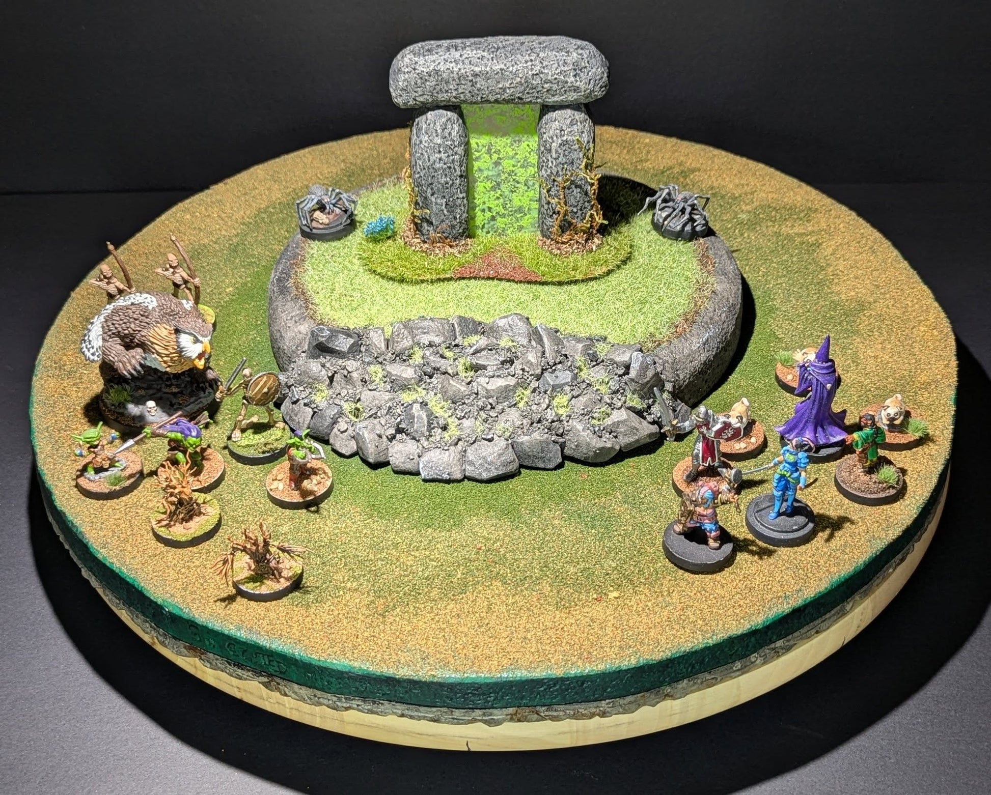 Klaarg the Unwieldy really kicked the hornets nest this time - literally. Giant hornets, the size of dogs, with dripping stingers as long and deadly as scimitars. Once clear of the woods, the cleric quickly casts a teleportation spell. It manifests itself as a mighty stone structure, with the shining portal between the stones. The party dives through the surface just as the buzzing of furious wings grows too loud and too close for comfort.