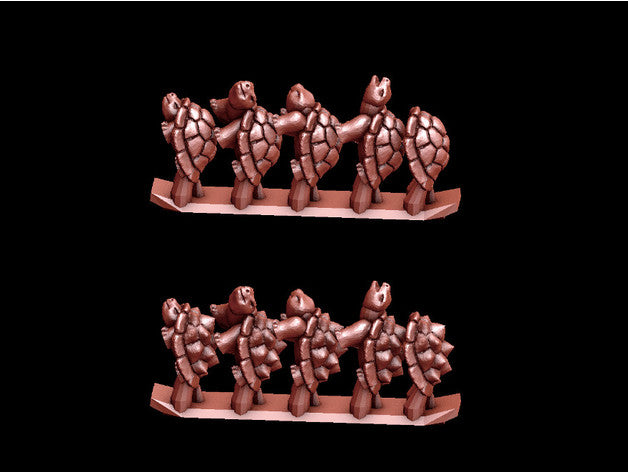 Tortoises come on the sprue for easier painting. Paint them up, then snip them off.